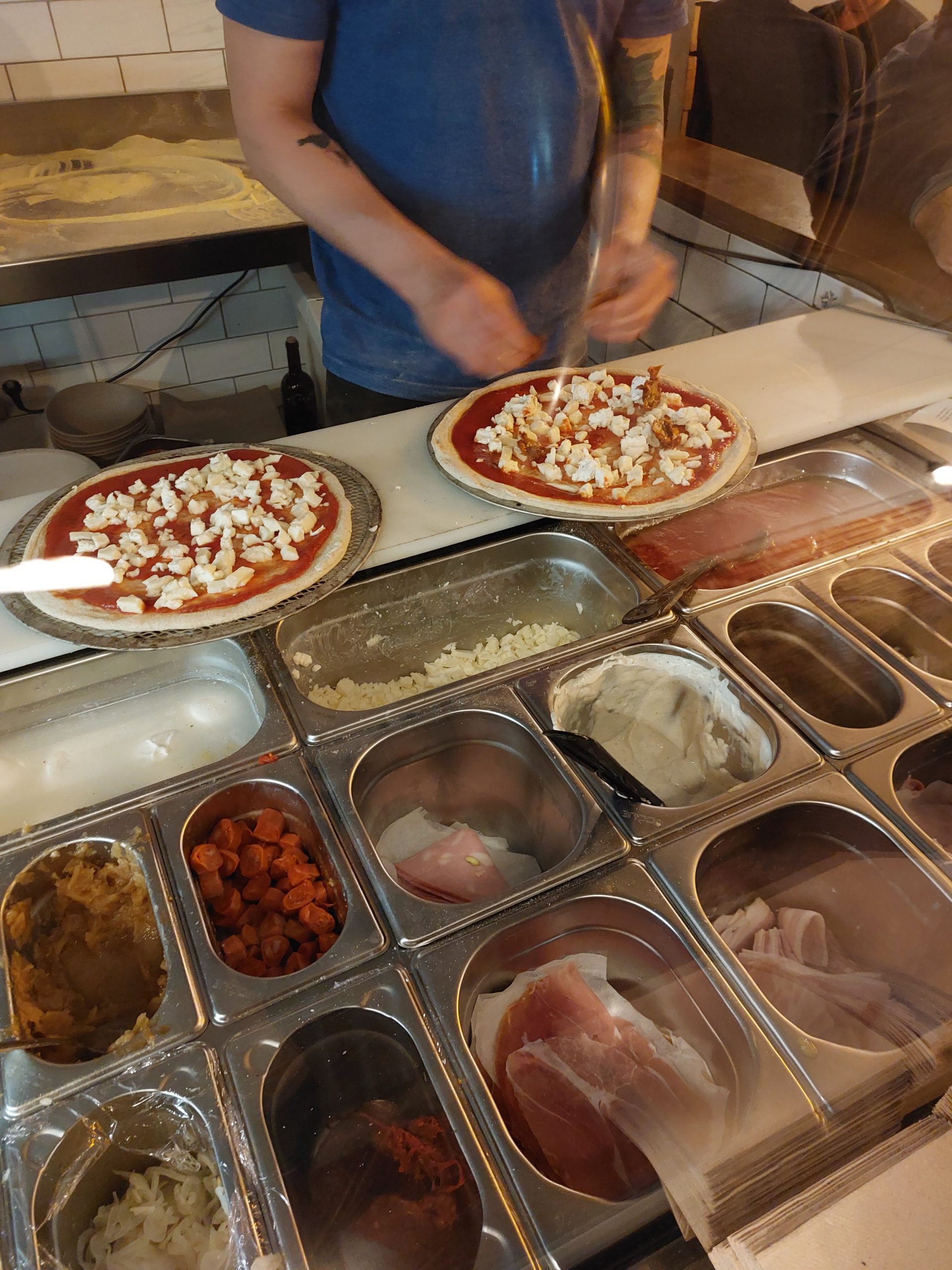 Antes del plato principal, no puede faltar el entrante… 400º pizza además de su completa propuesta de toppings para que puedas crear tu pizza favorita también incluye en la carta entrantes y ensaladas. Nosotros probamos «la burrata», el típico producto del sur de Italia que aquí viene acompañado con abundante foccacia, tomates, rúcula y trufa.