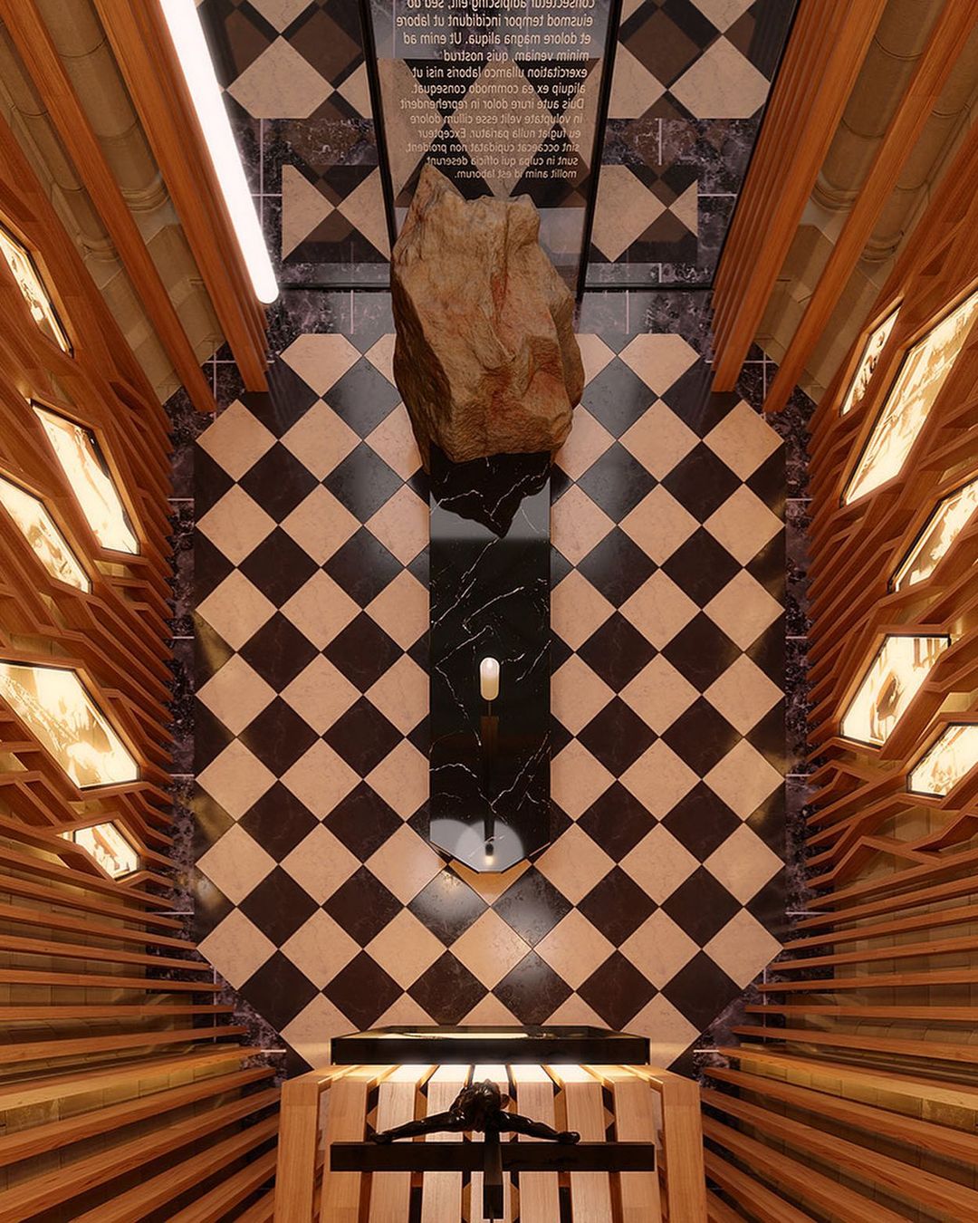 Los elementos que se encuentran en la capilla de San Juan Pablo II están cargados de contenido simbólico que hacen alusión a la Iglesia, la santidad y el primado de Pedro. En este proyecto han participado más de 70 personas en labores de iluminación, electricidad, cantería, diseño gráfico, carpintería, mantenimiento y mucho más.