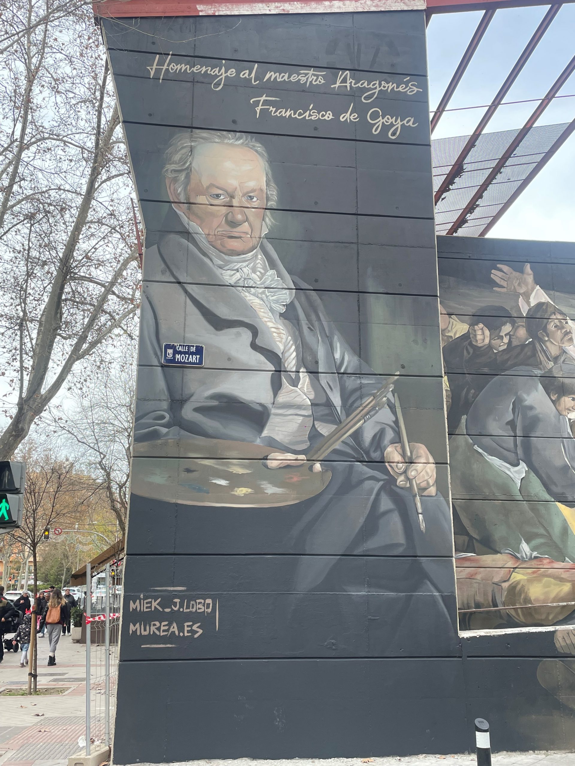 El mural se encuentra en la calle Mozart, esquina con el Paseo de la Florida, y ha sido realizado por Javier Lobo. Se puede llegar desde el Metro Príncipe Pío y con este proyecto se impulsa también la regeneración de la zona.