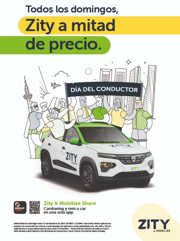 Cada domingo (hasta el 31 de diciembre), Zity celebra su Día del Conductor, una promoción que permite disfrutar de todos los trayectos a mitad de precio. Una oportunidad perfecta para moverse por la ciudad sin gastar mucho, especialmente durante estas semanas en las que Madrid se llena de planes y de luces.