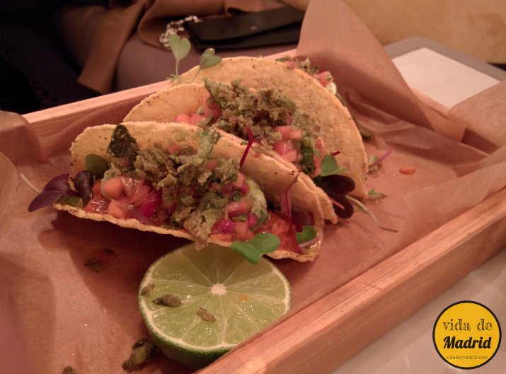 La carta propone una comida variada, muchos platos llaman la atención para su originalidad y es difícil elegir. Nuestros entrantes: los tacos de cochinita pibil con ceviche de mango, una mezcla «rara» pero absolutamente rica; lomos de sardina ahumada con tartar de aguacate y salmorejo, otro plato que nos ha encantado, para repetir! Da gusto encontrar platos distintos en restaurantes de moda, ya estamos un poco saturados de ver siempre lo mismo…