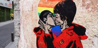 La Casa de Papel: beso Tokyo-Nairobi, obra de Tvboy en Chueca....