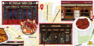 El mapa con el recorrido por los restaurantes centenarios de Madrid