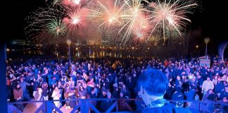 Una gran fiesta de Año Nuevo Chino y fuegos artificiales en...