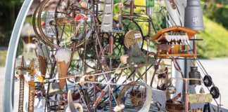 Una bola de nieve con perros San Bernardo, ollas de fondue...